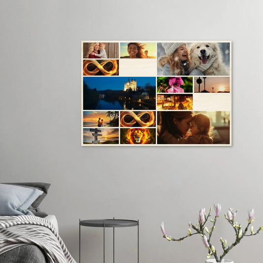 Fotocollage auf Holz / Birkenholzplatte Erinnerungen bewahren